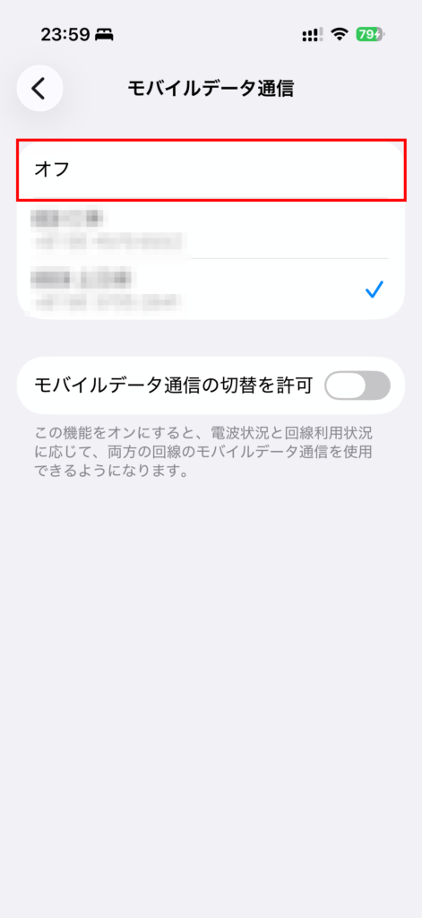 ※ モバイル通信は、同じ画面からいつでもONに戻すことができます。